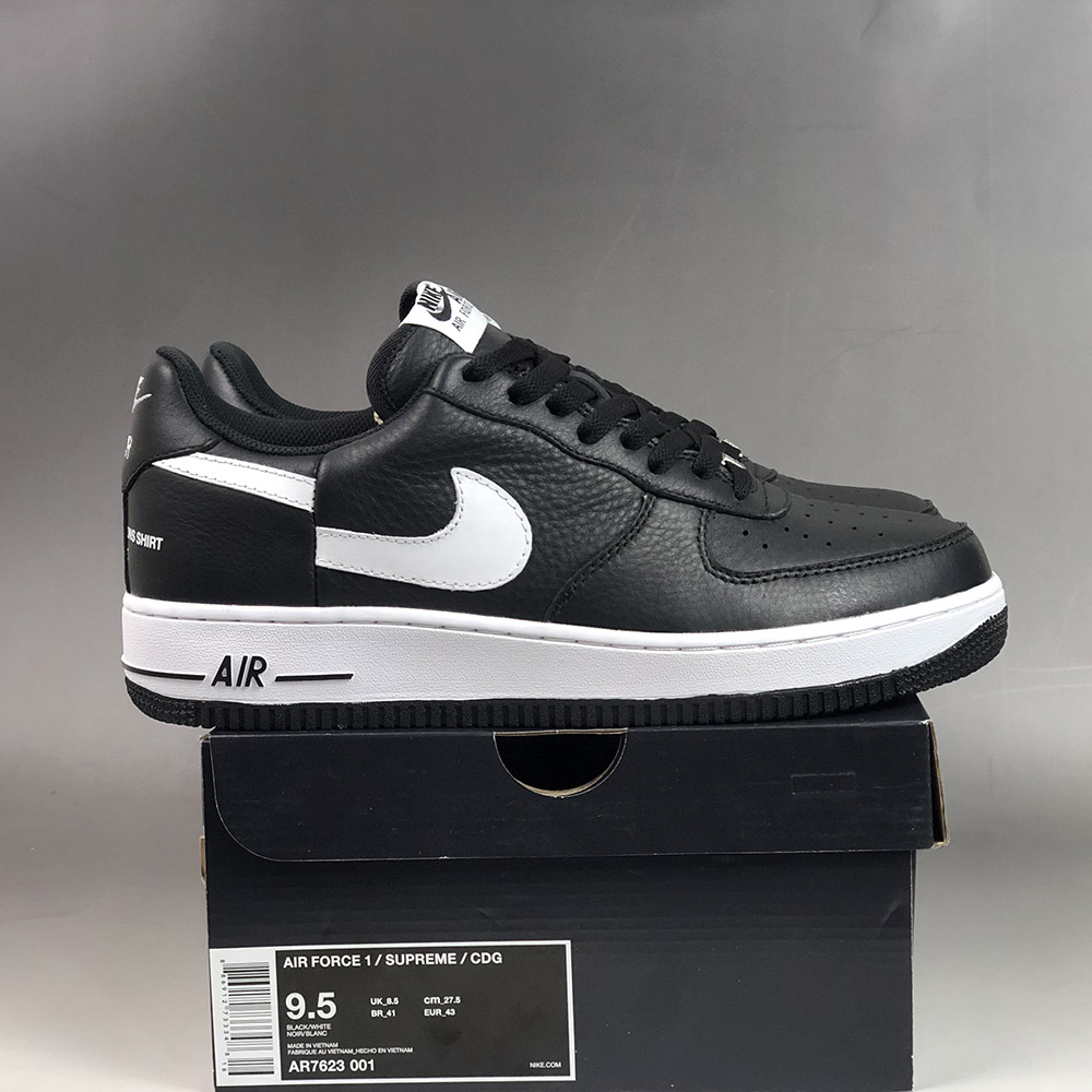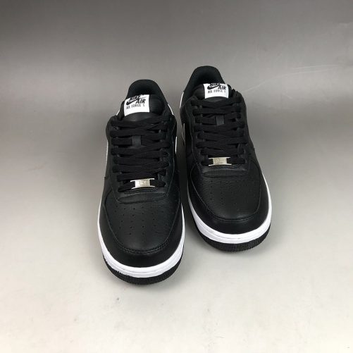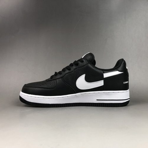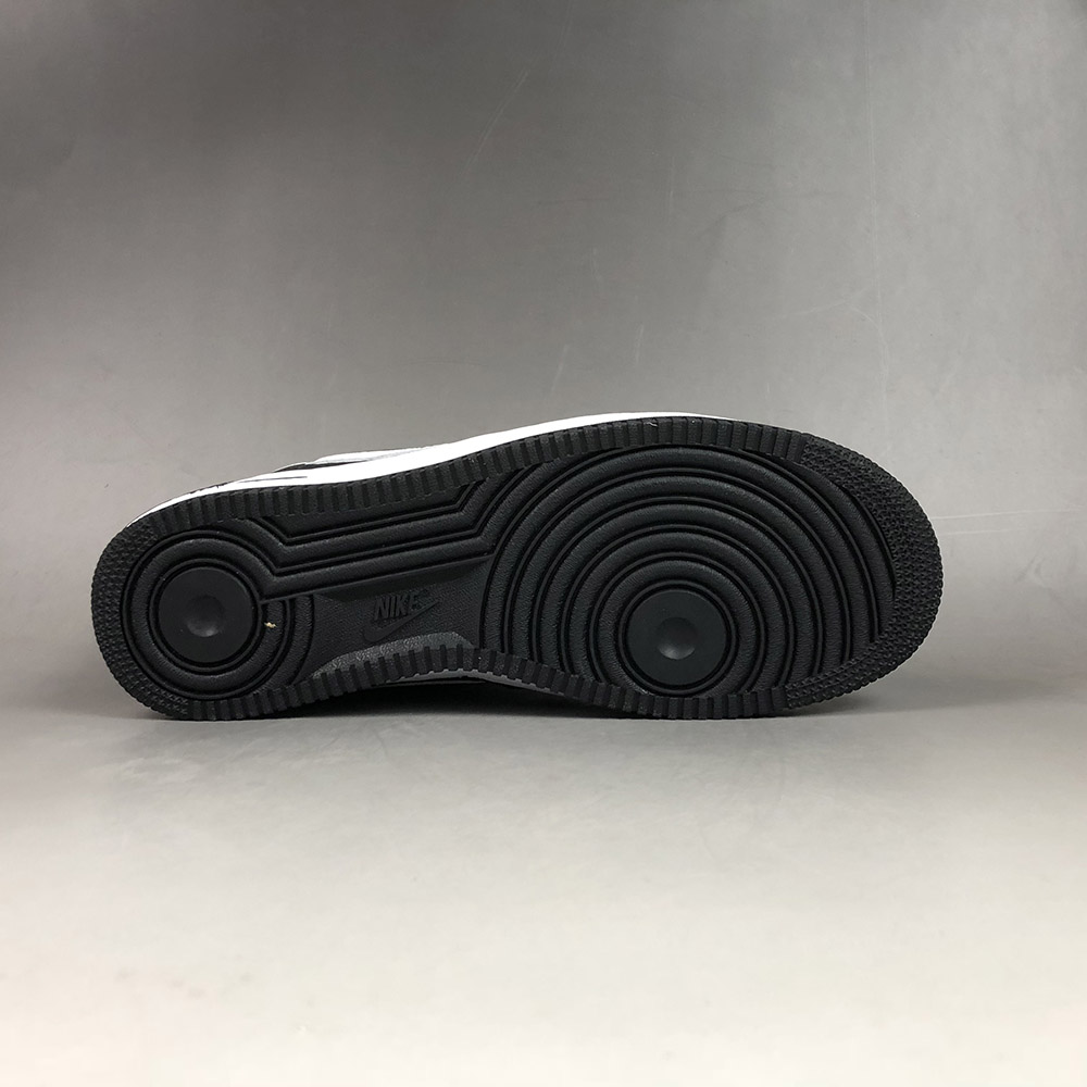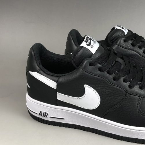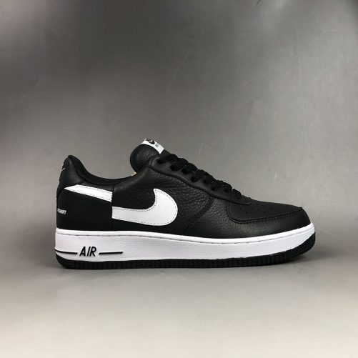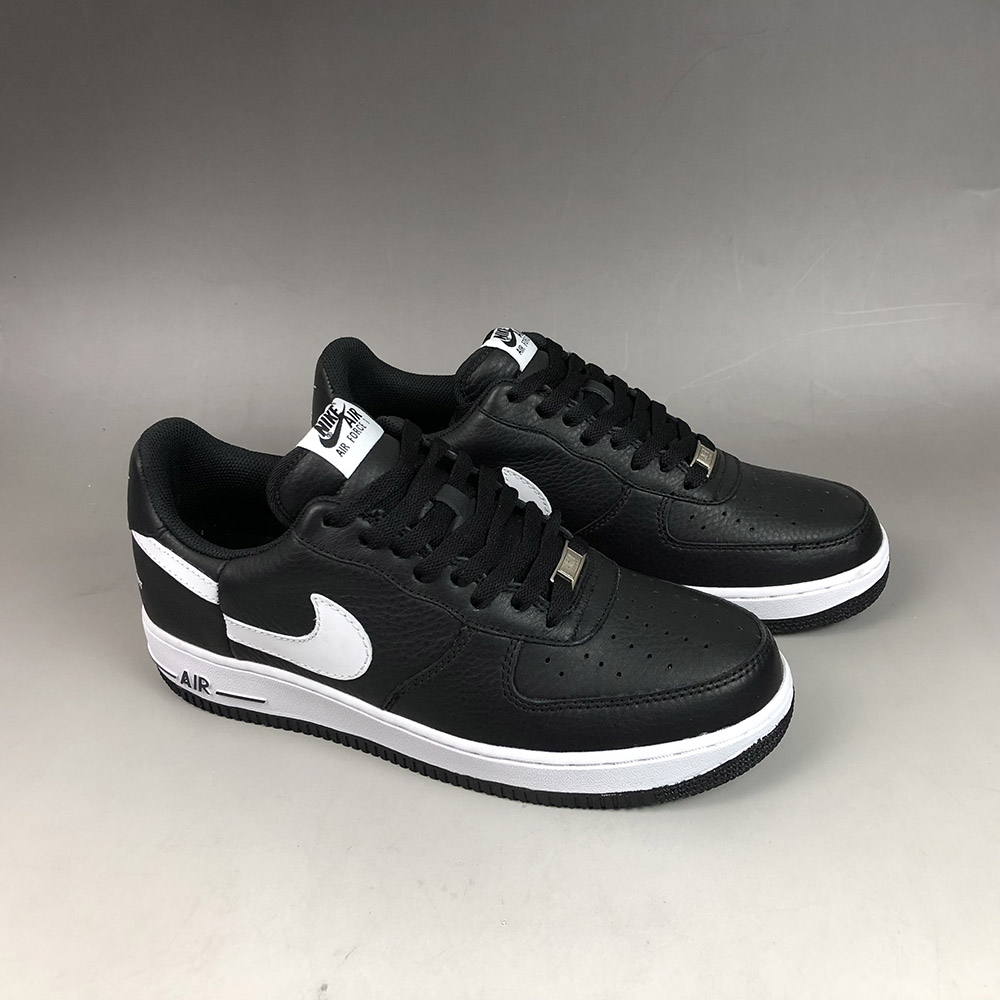 Dressed in a sleek and simple Black and White color scheme. This Nike Air Force 1 Low fears a Black tumbled leather upper highlighted by its misaligned White Nike Swoosh logo on the sides. Additional details includes three-way branding on the heel and insole atop a White midsole and Black rubber outsole.
