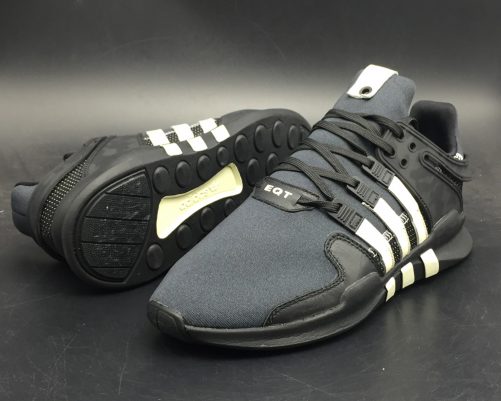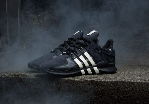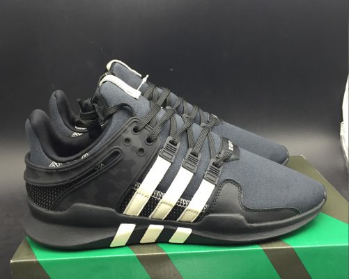 The classic adidas EQT Support ADV features a Black neoprene upper with leather panels and a translucent Camouflage pattern on the heel support. The Black base is offset with Cream-like Three Stripes and accents on the toughen. The EQT is also branded on the lace cage as a nice final touch.