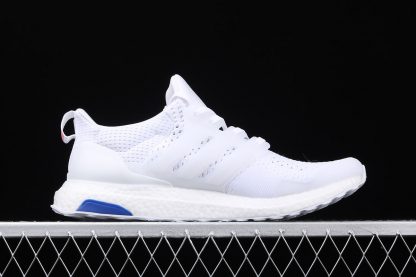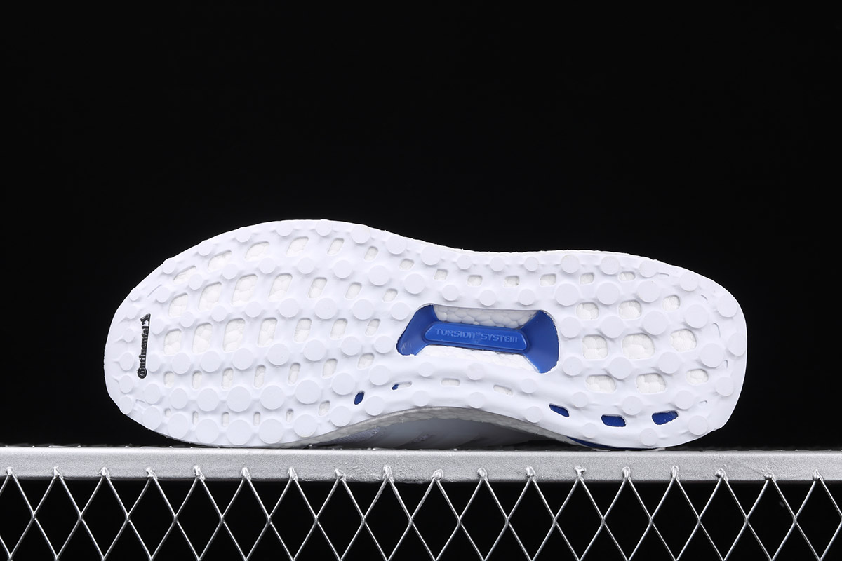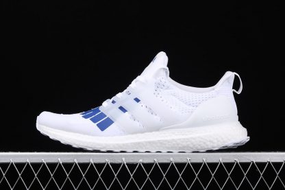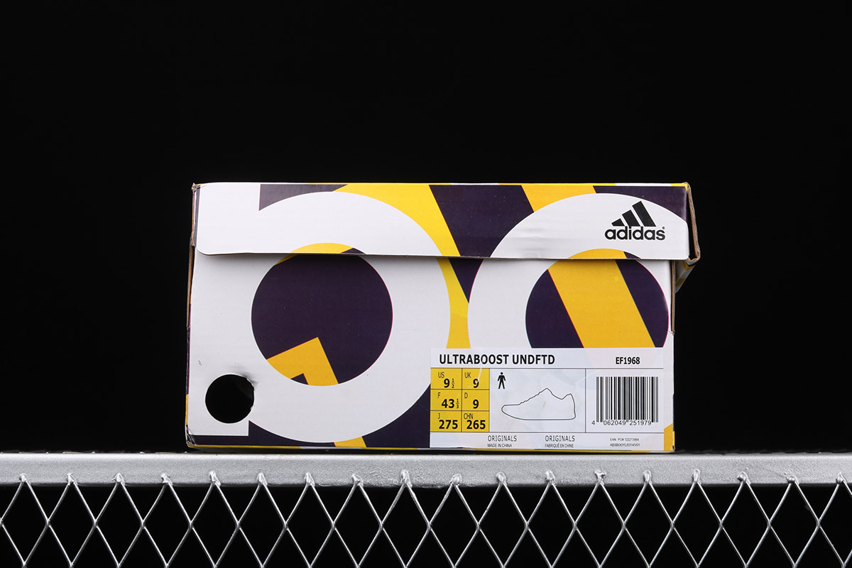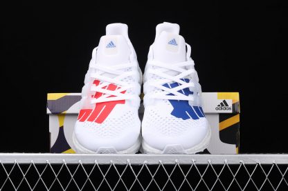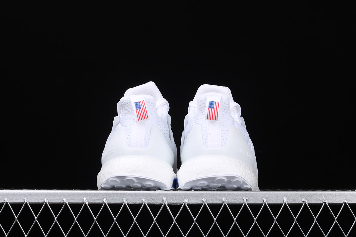 This iteration of the adidas Ultra Boost has a 4th of July-like theme. It features a clean White Primeknit upper with translucent cage overlay, matching White heel counter and Boost cushioning in the midsole and outsole. A reflective Undefeated’s logo is largely placed on the toe area, along with star-printed mismatched laces, USA flag on the heel and branded insoles.