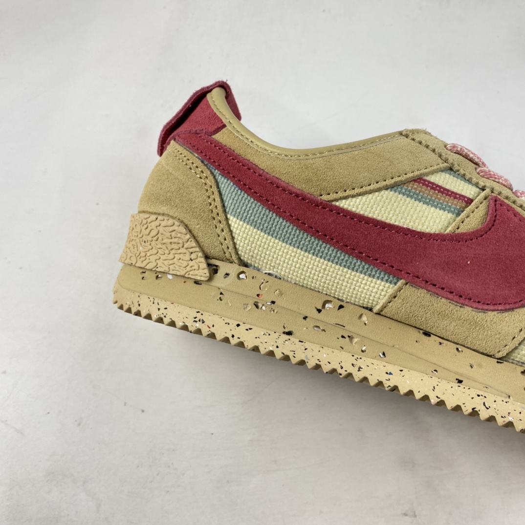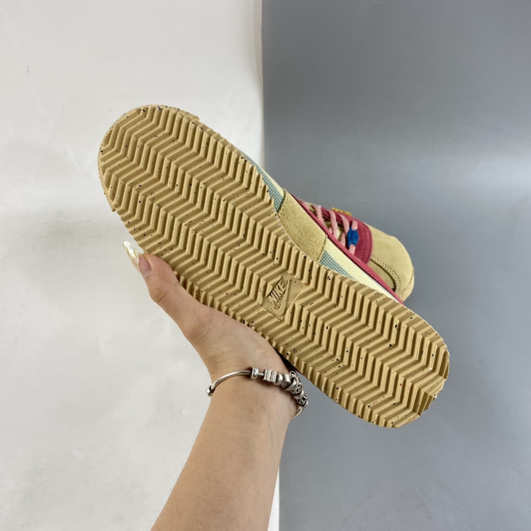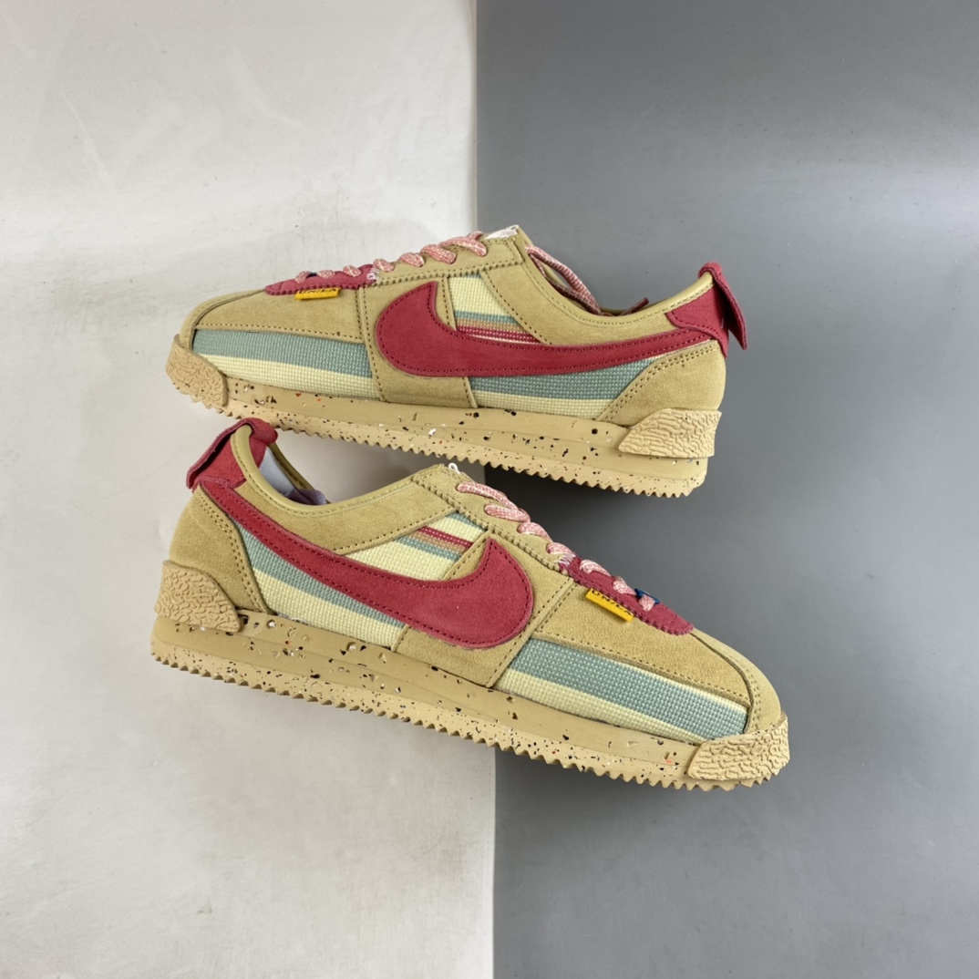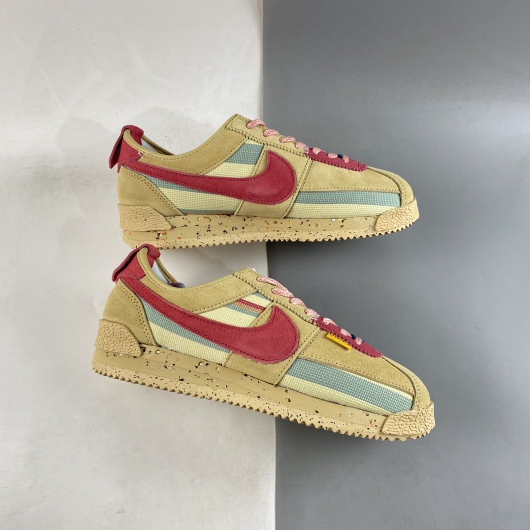 This colorway of the Union x Nike Cortez opts for a similar aesthetic as the Union x Air Jordan 4 Guava Ice. It starts off with a Tan hue all over the upper done in a textile canvas and suede construction. Vibrant pink detailing spotted on the lower eyestay, Swooshes, tongue tags, and heels add some nice vibrancy to the sneaker, while unique details include Union’s UN/LA tags on the lateral forefoot, their signature Frontman logo on the heel flaps that cover “NIKE” branding in White. Co-branded cork insoles, two-toned laces and dual branding on the tongue complete the look.