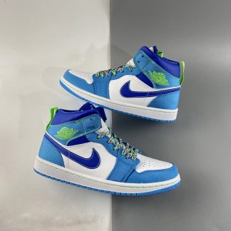 Air Jordan 1 Mid White Blue Neon Green For Sale