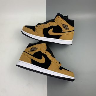 Air Jordan 1 Mid ‘Wheat’ Desert Ochre/Black For Sale