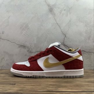 Nike SB Dunk Low “Shanghai” White/Metallic Gold-Redwood For Sale